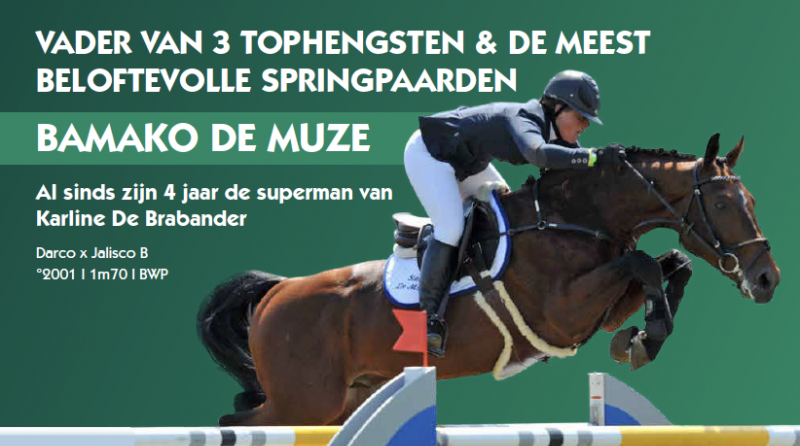 Bamako de Muze is ook zelf in de sport uitgegroeid tot de "superman” voor Karline De Brabander. Ze sprongen samen nog naar de zevende plaats in de Sires in Mechelen eind 2015. Een jaar eerder was er een vierde plaats in de Queen’s Cup. Op CSIO Lissabon wonnen ze vorige zomer de Six Bars na een sprong over twee meter. In Vlamertinge grepen ze de internationale grote prijs. Bamako springt al op GP-niveau sinds 2009 en verzamelde jaar na jaar ereplaatsen tot op niveau 1.60m.