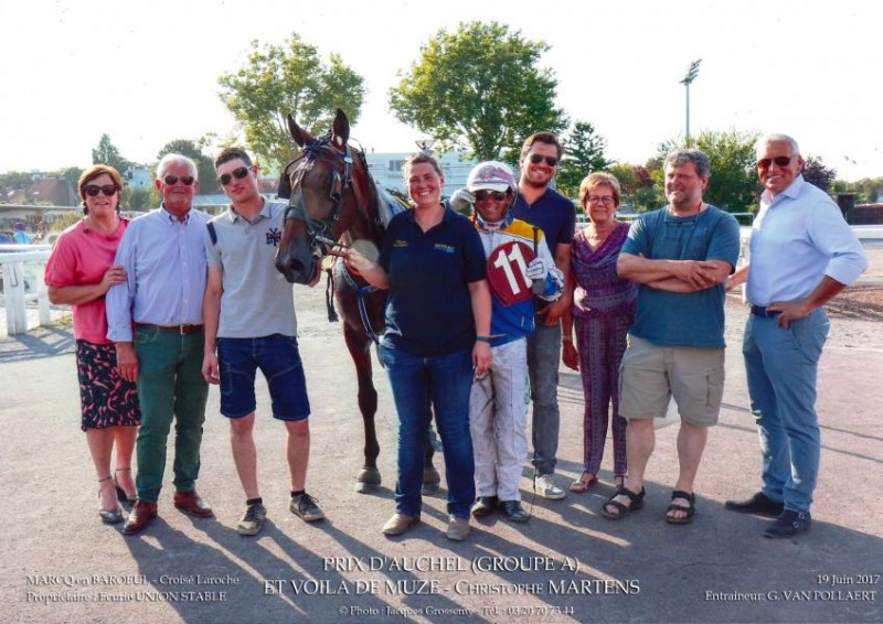 Na tweemaal winst op de koersbaan in Ghlin, doet Et Voila de Muze met Christophe Martens zijn kunstje op de koersbaan van Le Croise Laroche in 1' 18" 4 in de Prix d'Auchel (Groupe A) 15 000€.