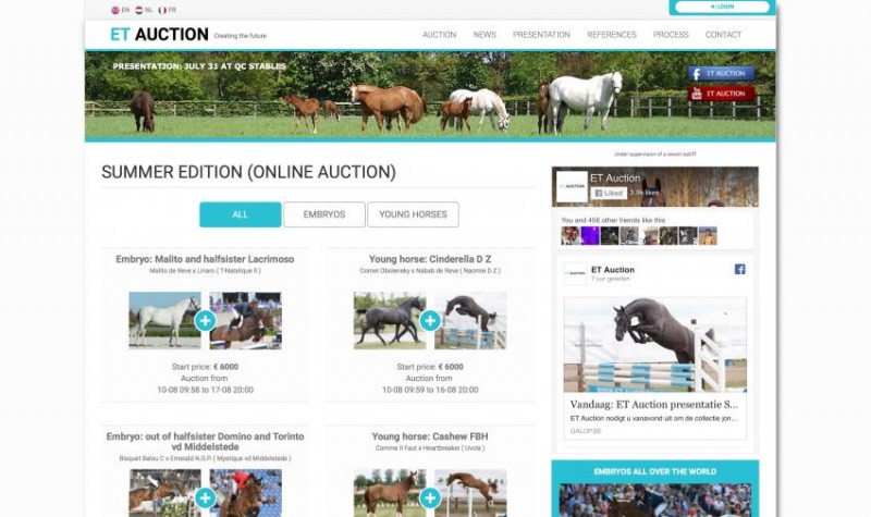 Auction of the young horse collection will take place on August 10th until August 16th 8pm, the embryo collection will take place on August 10th until August 17th 8pm.