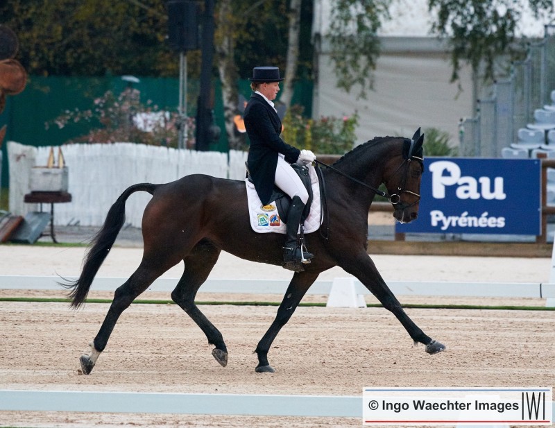 Fletcha van't Verahof (v. Vigo d'Arsouilles) en Karin Donckers op plaats 5 na de dressuurproef van de CCI4* in Pau.